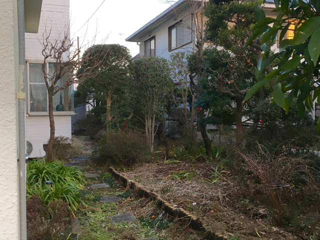 「奥半分の和風庭園に通じる手前を綺麗にしてほしい」との依頼でした。